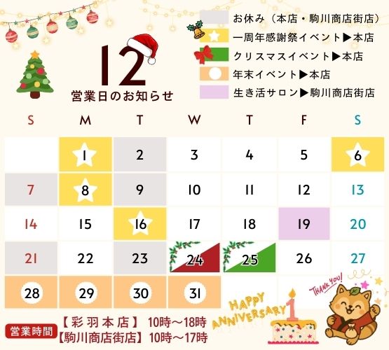 12月はイベント盛りだくさんの1ヶ月となっております。